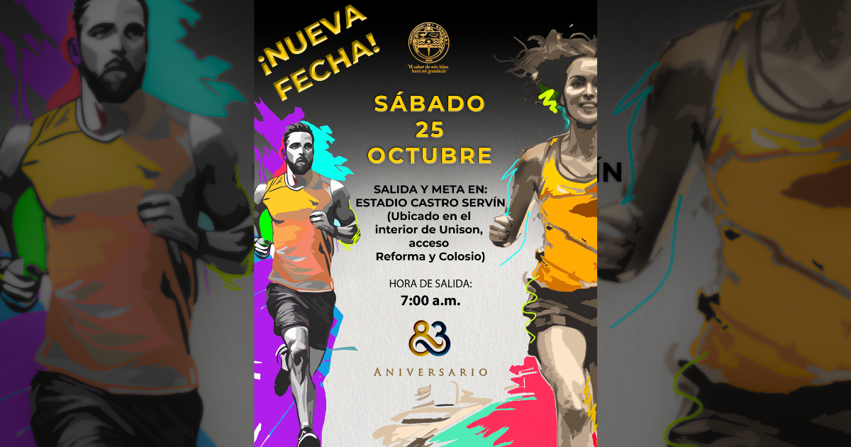 La Carrera del 83 Aniversario de la Universidad de Sonora se llevará a cabo el sábado 25 de octubre. El evento deportivo fue reprogramado luego de que las condiciones climatológicas impidieran su realización el pasado 12 de octubre.