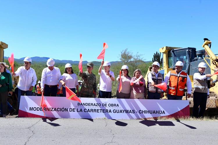 En Rosario Tesopaco, se dio el banderazo a los frentes de obra de la modernización de la carretera Guaymas-Chihuahua; un extraordinario proyecto que vendrá a mejorar la comunicación entre ambos estados, además de los poblados intermedios, para dar impulso al turismo de estas zonas y facilitar el comercio de exportación entre las dos entidades.