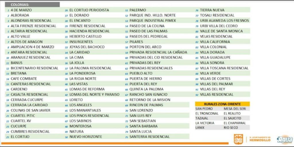 AVISO: 92 colonias del norte de Hermosillo sin agua