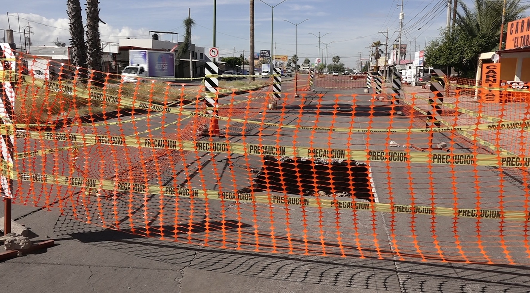 Socavón en el bulevar Lázaro Cárdenas, sigue sin ser reparado.