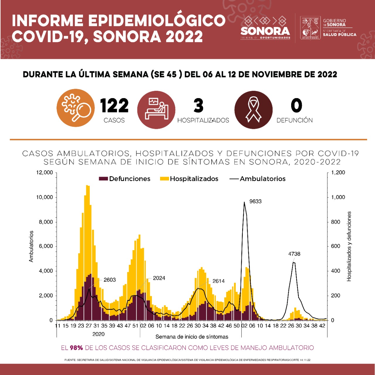 De estos casos no se reporta ninguna defunción y son cifras de la semana epidemiológica 45, que abarca del 6 al 12 de noviembre.