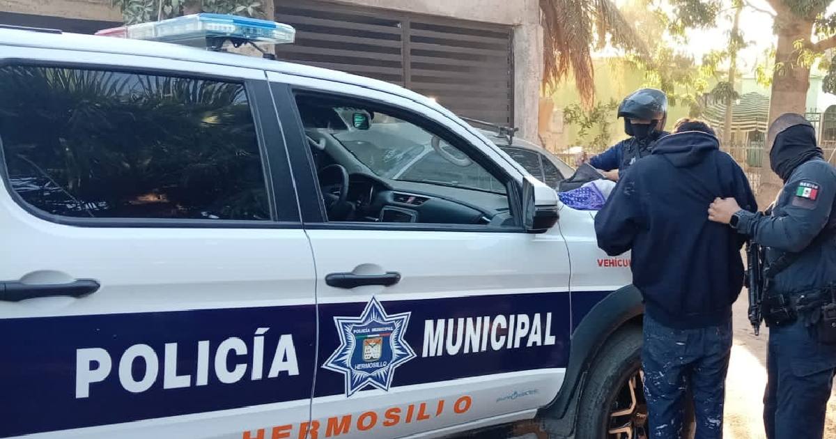 Sujetos son detenidos tras romper cristal de farmacia y robar 4000 mil pesos en productos en el centro de Hermosillo