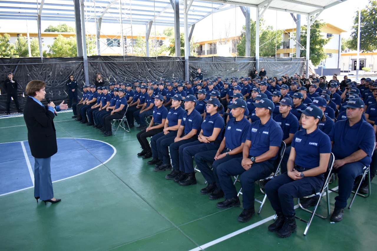 Del Río Sánchez comentó que la ciudadanía reconoce el desempeño de las y los cadetes de la generación Gamma durante su participación en operativos preventivos, como parte de la Jornada Permanente por la Paz en Empalme, Guaymas, en escuelas y colonias donde han generado condiciones cercanía y confianza.