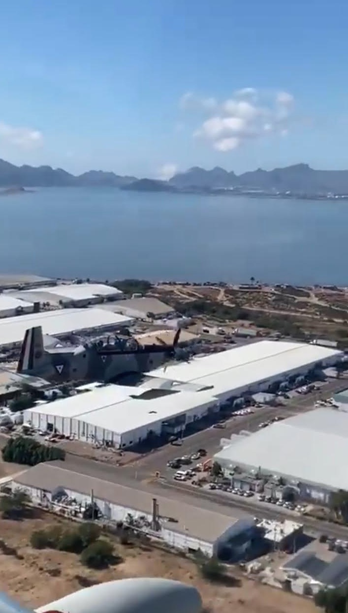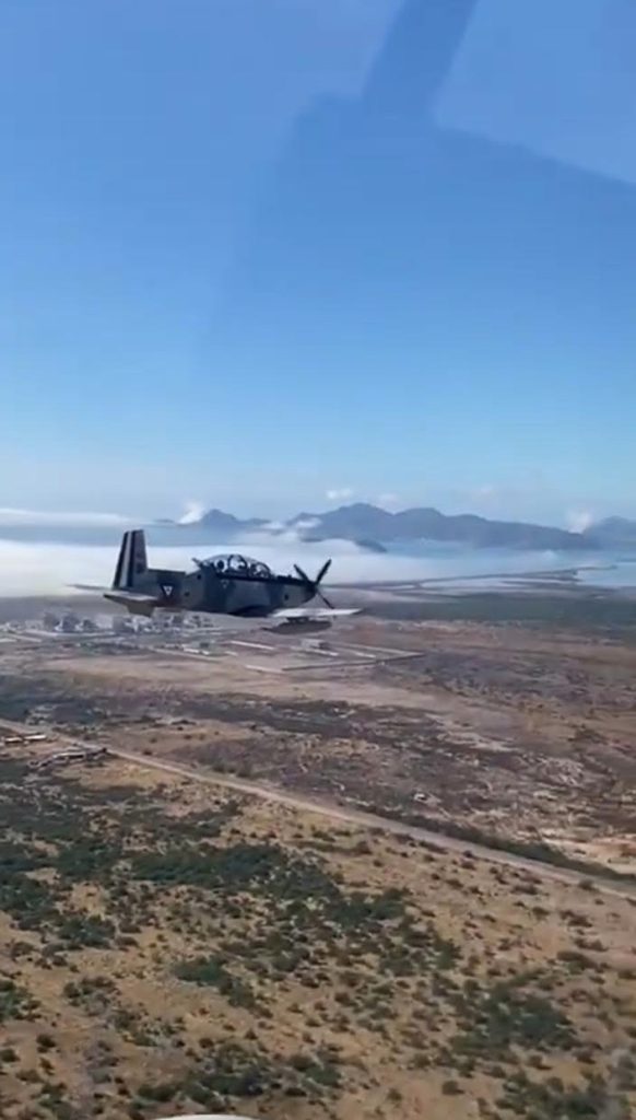 Aviones T6 de la Fuerza Aérea Mexicana sobrevuelan Guaymas y Empalme, como parte de las labores de seguridad y vigilancia, tras los hechos violentos protagonizados por bandas criminales en días recientes.