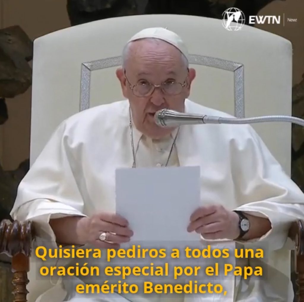 En la Audiencia general de este miércoles 28 de diciembre, el Santo Padre dijo que su predecesor “está muy enfermo”, y animó a pedirle “al Señor que le consuele y le sostenga en este testimonio de amor a la Iglesia hasta el final”