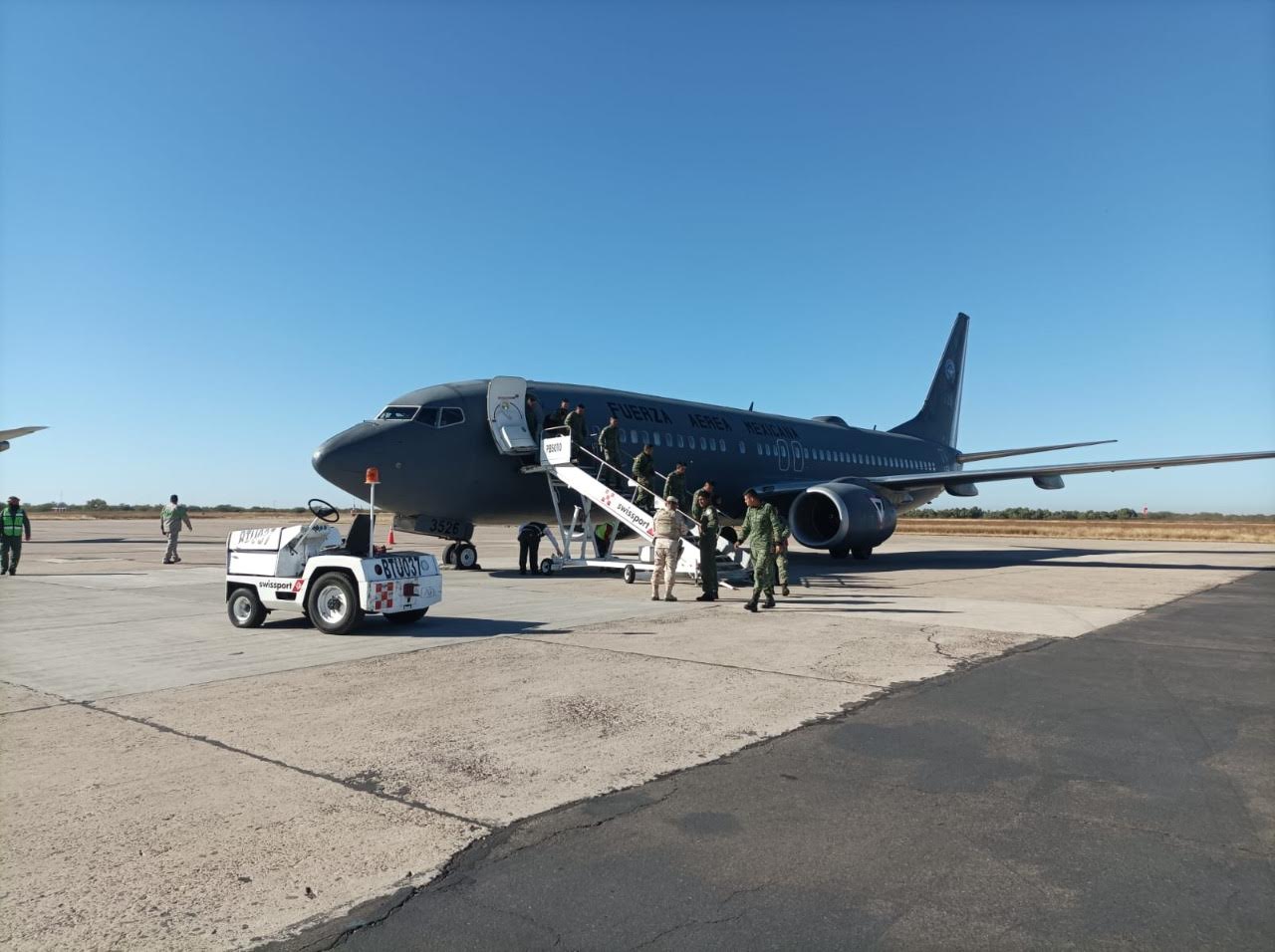 La Secretaría de la Defensa Nacional informa que arribaron 2 aeronaves pertenecientes a la Fuerza Aérea Mexicana a las instalaciones del Aeropuerto Internacional de Ciudad Obregón, Son., trasladando a 200 elementos del segundo Batallón de Fusileros Paracaidistas de la Ciudad de México en apoyo a la población civil en los municipio de Empalme y Guaymas, dentro de la operación “Fuerza de Tarea Conjunta México”, durante el periodo del 04 al 11 de Ene. 2023.