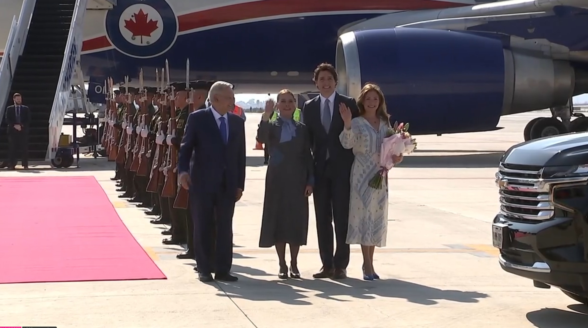 El Presidente canadiense llegó acompañado de su esposa, fue recibido por López Obrador y su esposa Beatriz Gutiérrez Müller.
