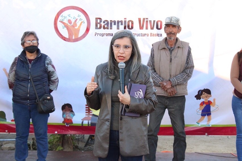 La secretaria Briceño Zuloaga aprovechó la ocasión para informar a vecinos presentes que todas las obras se desarrollan en el marco de programas que la Secretaría de Desarrollo Social pone al servicio de la población sonorense.