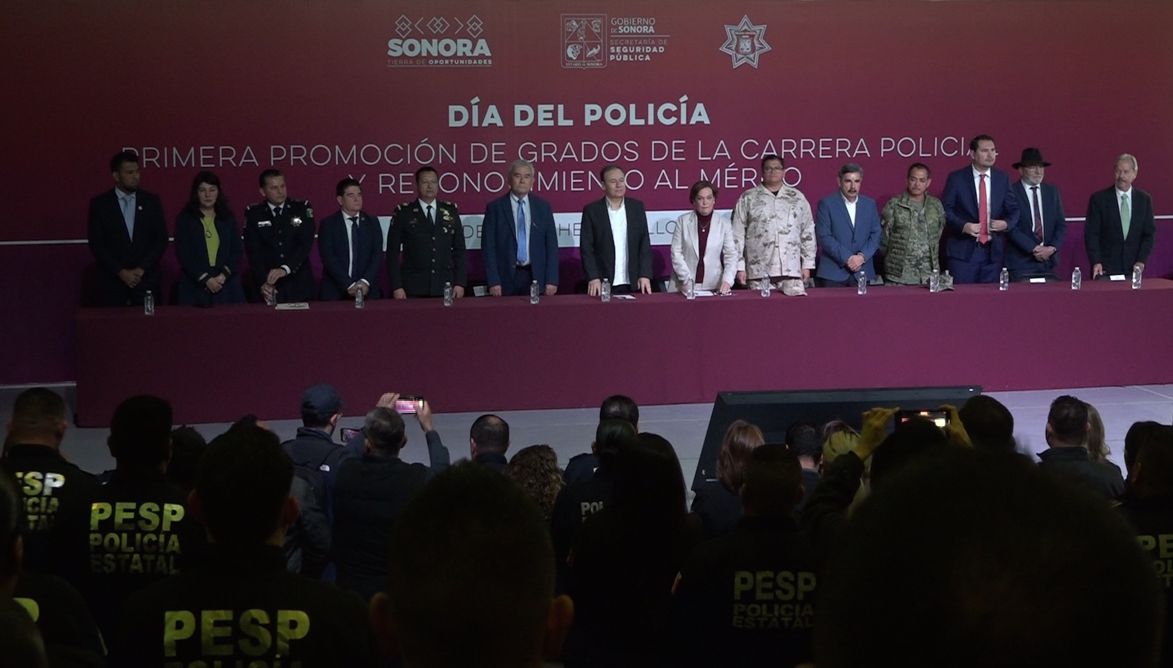 La ceremonia la encabezó el gobernador Alfonso Durazo Montaño, quien reconoció el esfuerzo que han hecho el personal de la policía estatal para recuperar la paz en el estado, el cual en los últimos meses ha sido muy demandante.
