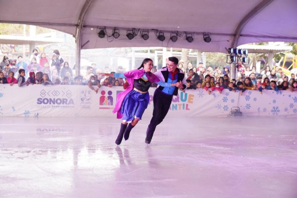 Durante el show de patinaje “Un Mundo Maravilloso Sobre Hielo”, en el que chicos y grandes disfrutaron de coreografías, acrobacias, actos de magia y mucho más, la directora general de DIF Sonora, Lorenia Valles Sampedro, informó que la pista de hielo estará disponible, completamente gratis, durante una semana más.