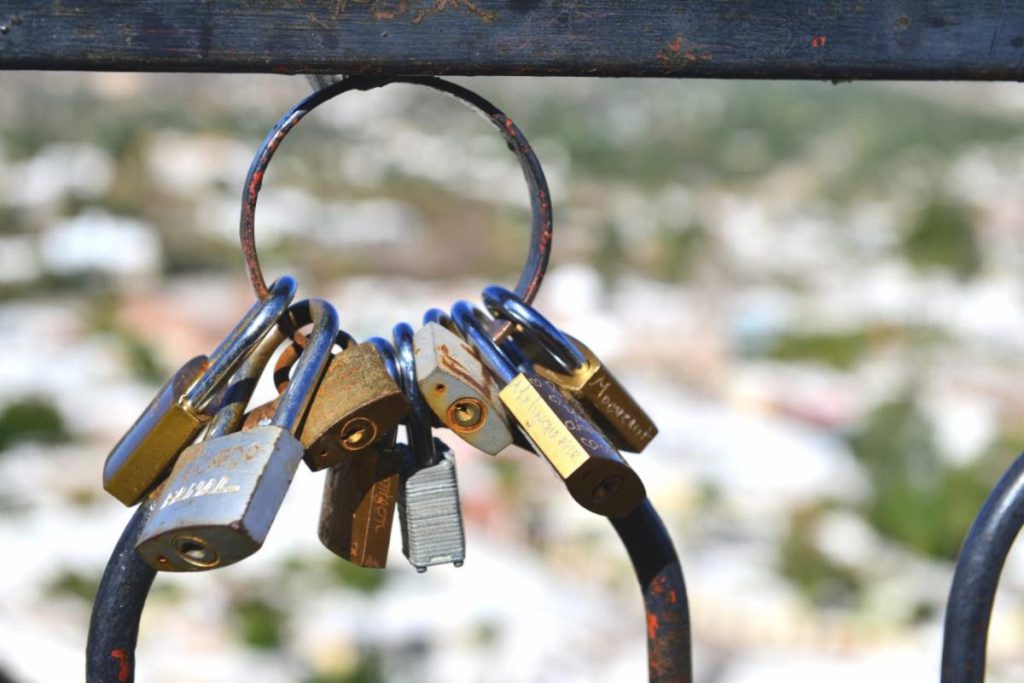 Los candados cerrados en el barandal del mirador de la ciudad de Álamos forman parte de la tradición del lugar.