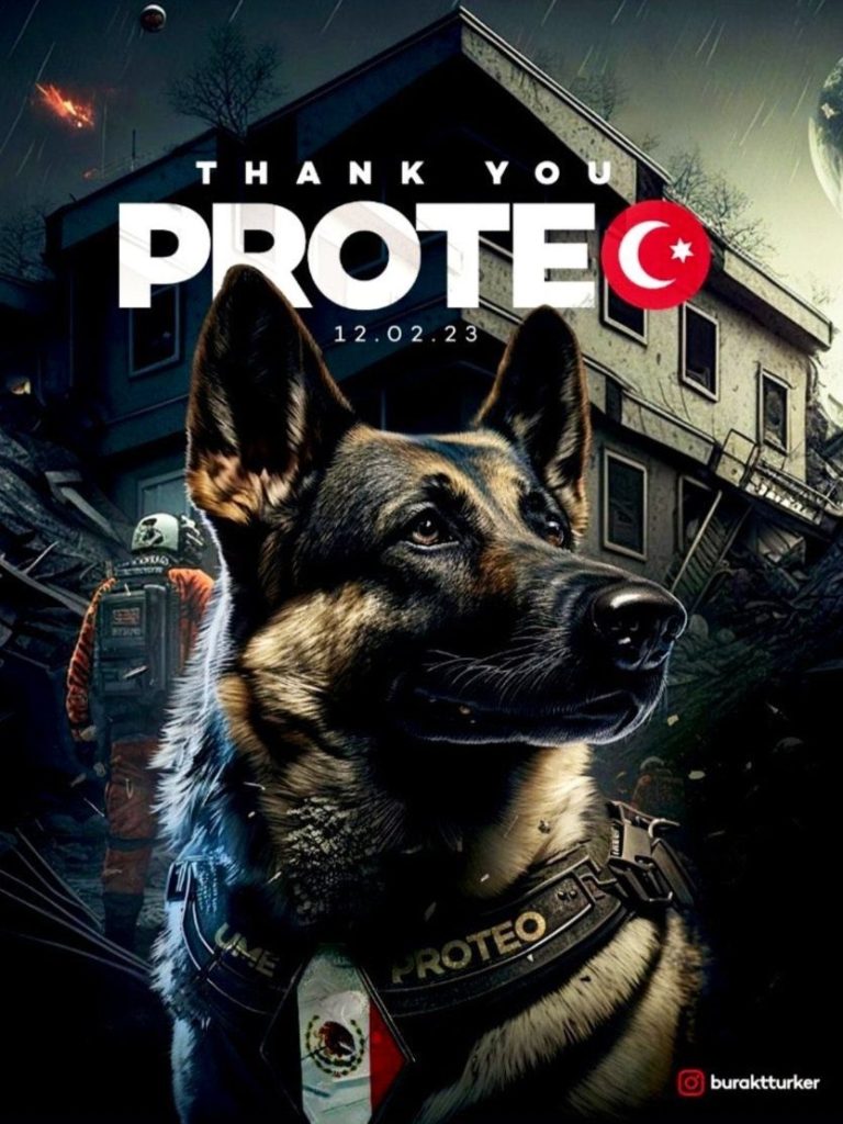 Un diseñador turco hizo una imagen de Proteo en agradecimiento a su labor, y están considerando al can, héroe mundial.