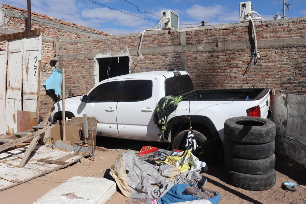 Se aseguraron un pick up Toyota Tundra, color blanco, modelo 2021, con placas de California, un sedán Ford Focus blanco, y un pick up Toyota Tacoma con placas de Oklahoma. En los tres autos se localizaron indicios tanto en el interior como en el exterior.