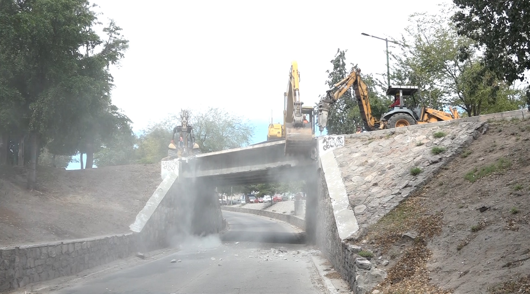 Dos excavadoras de gran tamaño fueron las encargada de demoler el antiguo puente del paso a desnivel del bulevar Luis Encinas, mismo que tenía 60 años de vida útil.