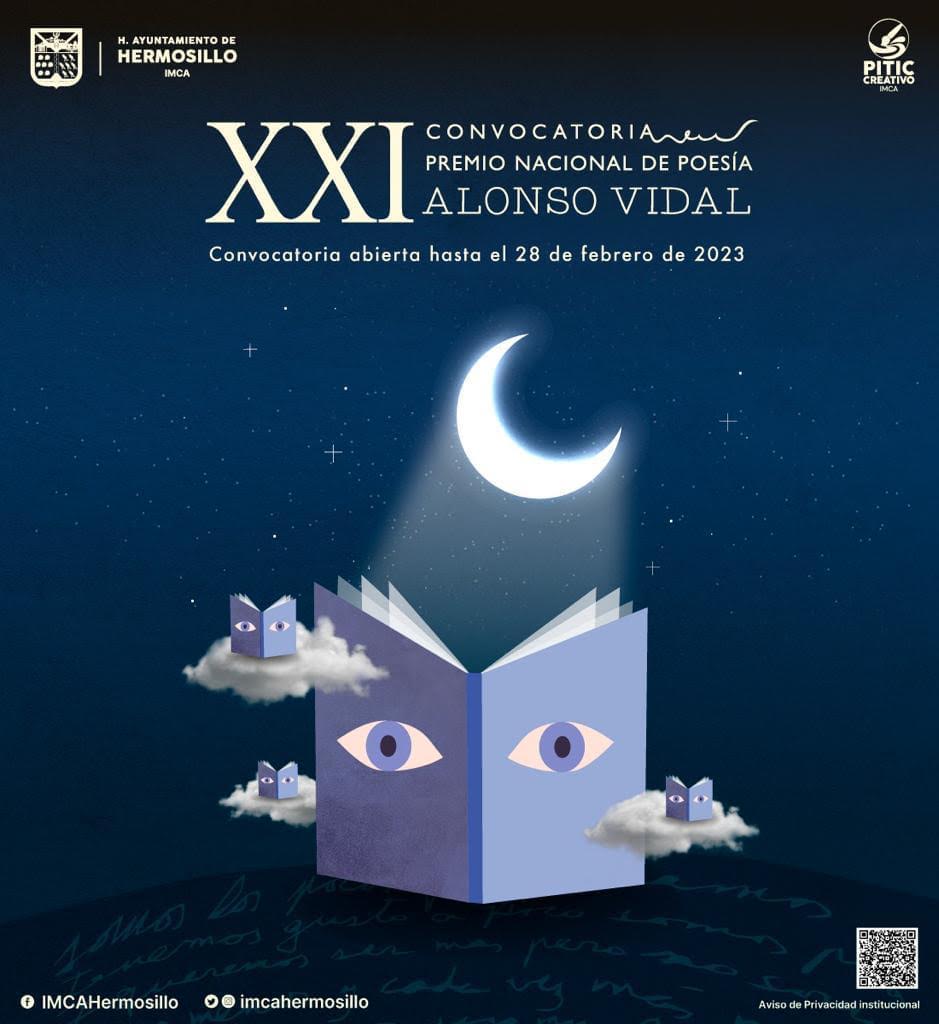 El Instituto Municipal de Cultura y Arte de Hermosillo, convoca al XXI Premio Nacional de Poesía Alonso Vidal que forma parte del programa Pitic Creativo, cuyo cierre de convocatoria es este martes 28 de febrero.