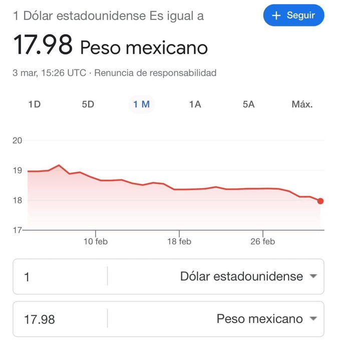 “México es el país con mayor fortaleza en su moneda después del dólar. Ha habido una apreciación del peso de poco más del 10 por ciento. Esto no se veía en medio siglo”, afirmó el presidente Andrés Manuel López Obrador.