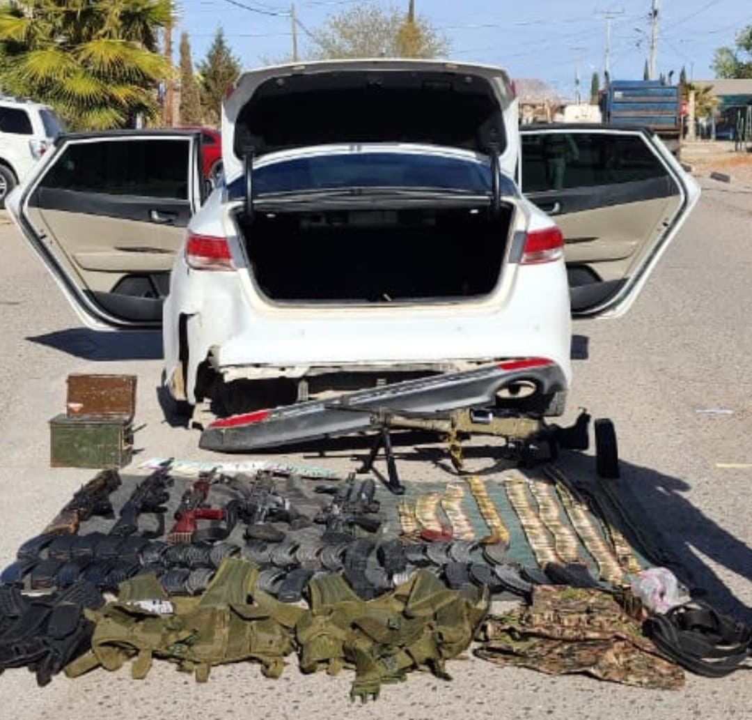 Seis rifles de asalto, un aditamento lanzagranadas, 50 cargadores, dos mil cartuchos de diferentes calibres y un vehículo, fueron decomisados por personal de la Secretaria de la Defensa Nacional en Agua Prieta, Sonora.