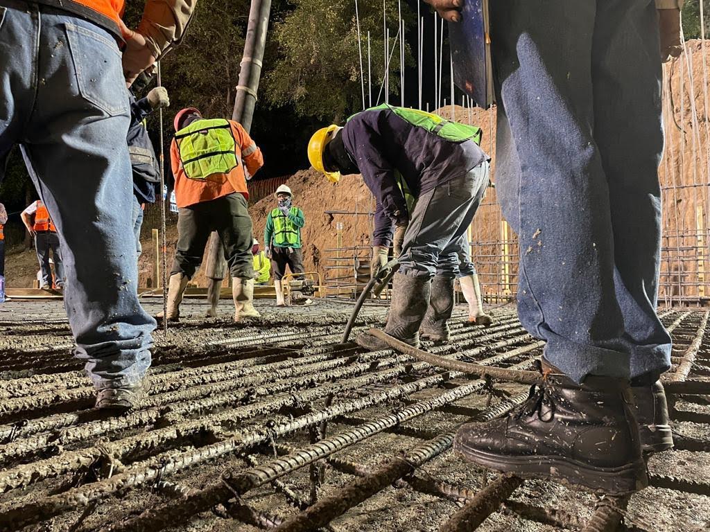 Personal del ayuntamiento aplica un colado especial de concreto en el paso a desnivel del bulevar Luis Encinas y Veracruz como parte de los trabajos de remodelación.