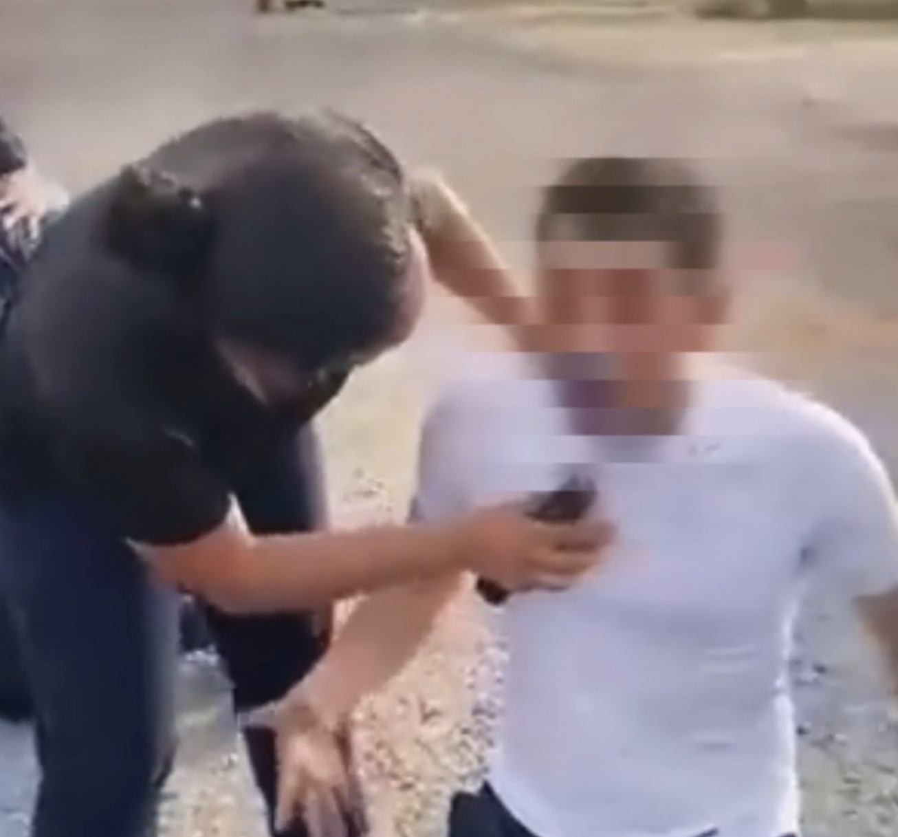 En las imágenes se mira como los prospectos a policías están arrodillados en el suelo y con los ojos cerrados siendo rociados directamente en la cara, muy de cerca de los ojos.