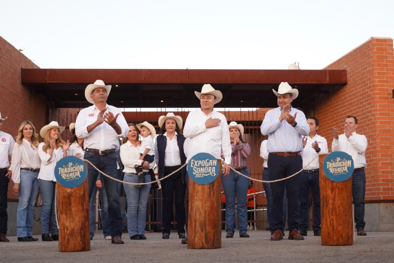 El gobernador Alfonso Durazo Montaño encabezó la ceremonia con la que quedó inaugurada oficialmente la edición 38 de la Exposición Ganadera 2023, fiesta sonorense que regresó tras tres años de ausencia y en la que sus asistentes podrán disfrutar las instalaciones totalmente rehabilitadas de la Unión Ganadera Regional de Sonora.