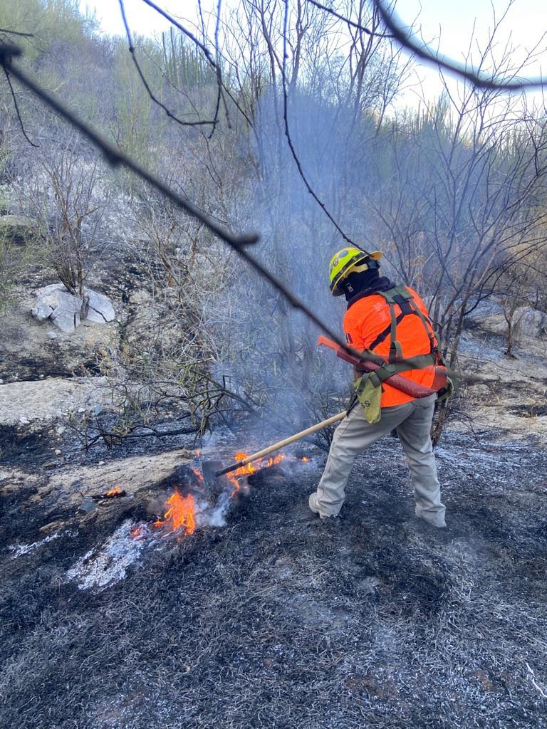Brigadistas estatales de manejo de fuego se encuentran trabajando para sofocar un incendio que ha surgido la tarde de este martes a un costado del kilómetro 10 de la carretera Hermosillo-Nogales.