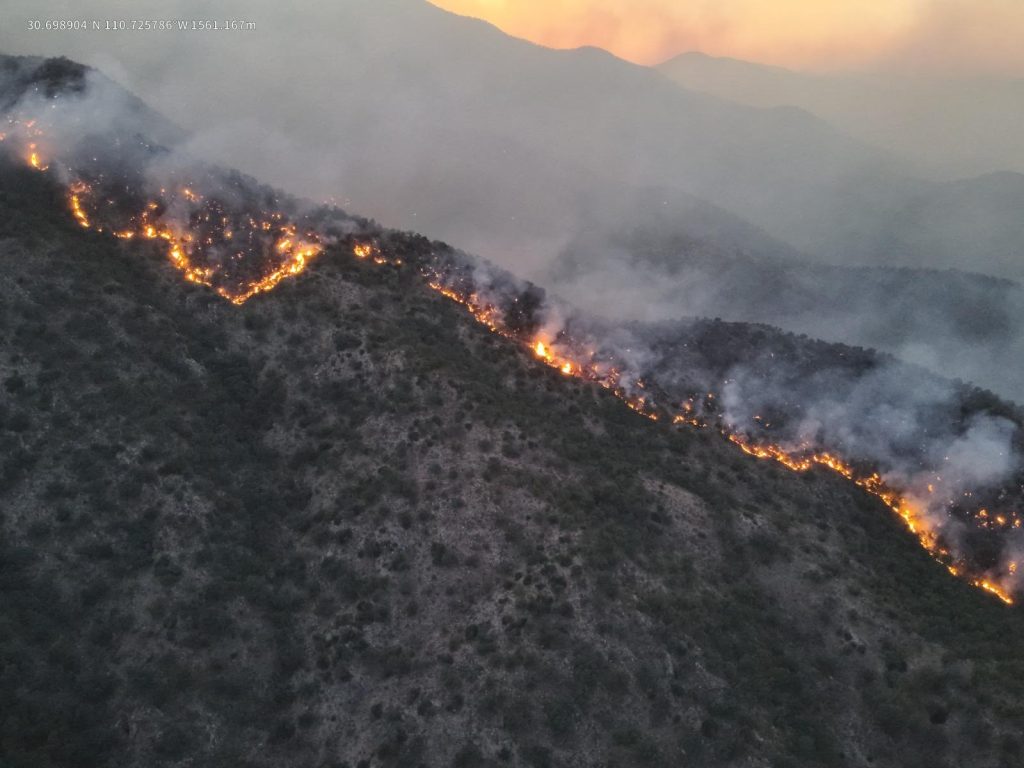 En dicho sitio el Escuadrón de Drones de Protección Civil Sonora ha realizado vuelos de reconocimiento para fijar estrategias para combatir las llamas.