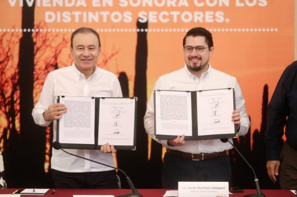 El Gobernador Alfonso Durazo Montaño y el Director General del Infonavit en México Carlos Martínez Velázquez, encabezaron la firma del Pacto por la Vivienda en Sonora en el que se invierten mil 500 millones de pesos. El objetivo de este acuerdo es brindar a las familias que no han tenido acceso a un hogar la posibilidad de obtenerlo, atendiendo así el rezago.