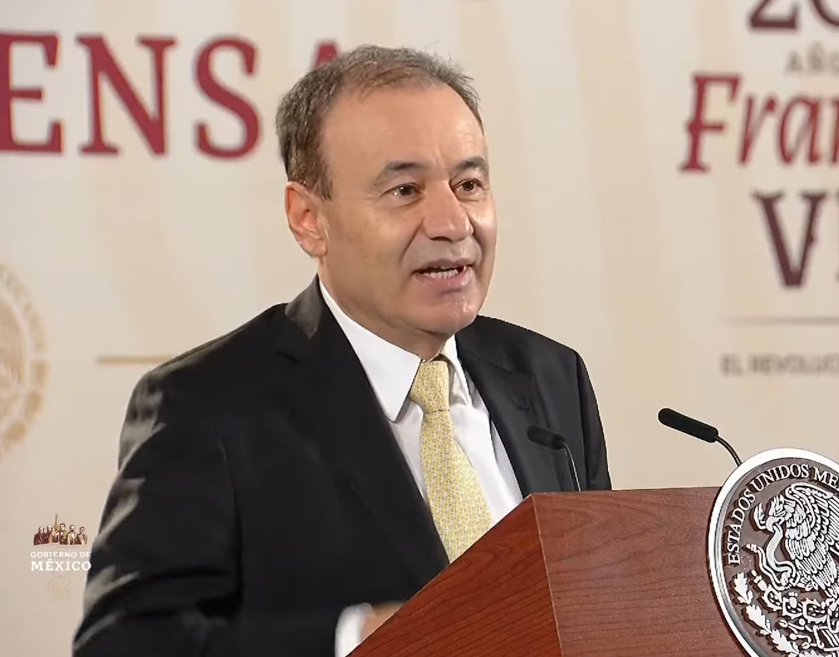 Estuvieron presentes: Leonel Cota Montaño, subsecretario de la Sader; Celida López Cárdenas, secretaria de Sagarhpa; Arturo Macosay Córdova, coordinador general de Ganadería del Gobierno de México; Juan Carlos Ochoa Valenzuela, presidente de la Unión Ganadera Regional de Sonora (UGRS); Juan Manuel González Alvarado, delegado de la Sader en Sonora; Yulia Valeria Guzmán Espinoza, directora general de Coordinación y Seguimiento; Fernando David Palos Ibarra, director general de vinculación interinstitucional; y Luis Alfonso Soto, representante de las y los productores.