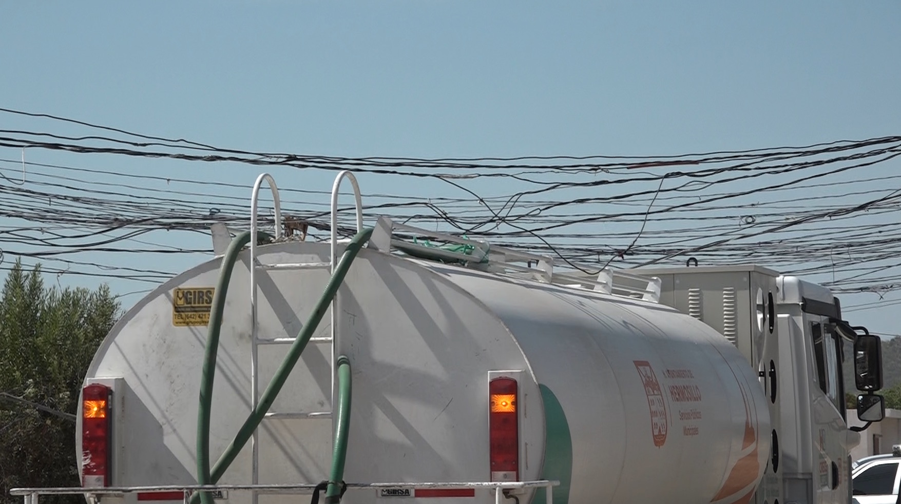 Una cisterna de agua propiedad del ayuntamiento de Hermosillo quedó atrapada en el cruce de las calles Haciendas del Sur y Jordán, en la colonia Alcatraces, ubicada en el sur poniente de la ciudad, debido a la colocación de una docena de diablos en el camino.