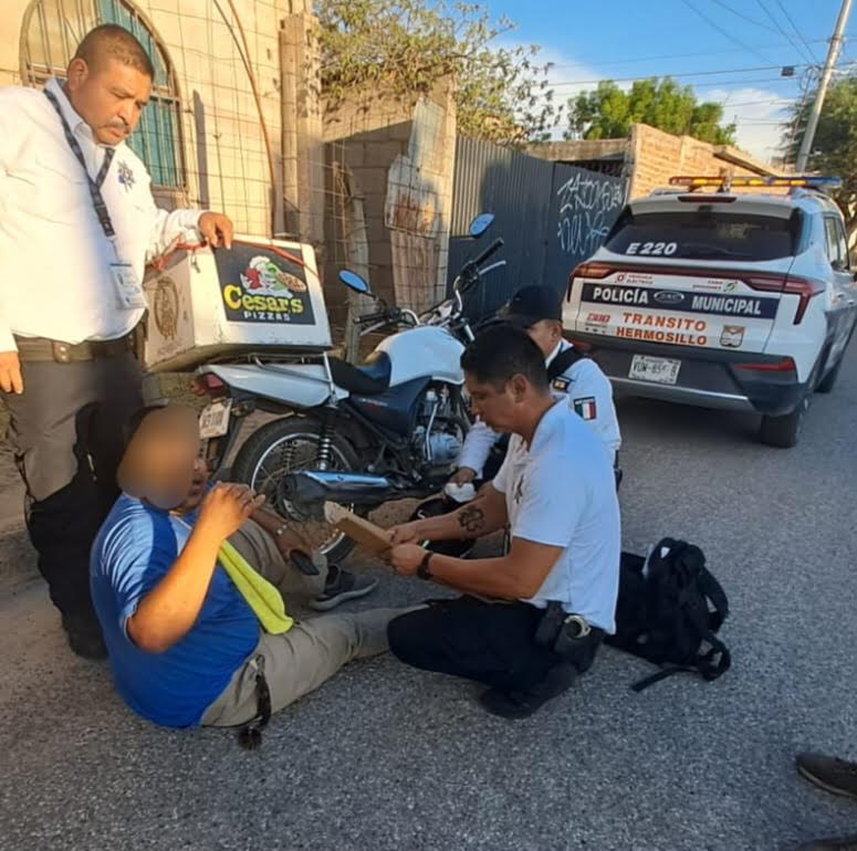 Motociclista recibe auxilio de patrulleros en Hermosillo