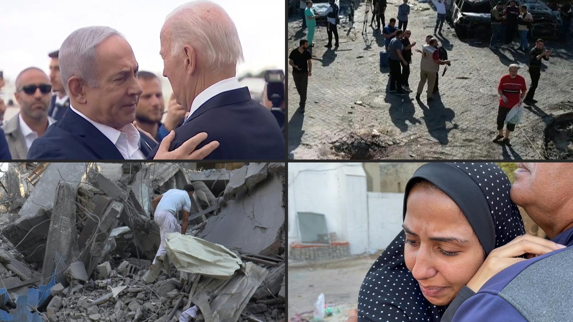 La visita de Biden a Israel estuvo marcada por el bombardeo del hospital de Gaza, calificada como «crimen contra la humanidad» por la Iglesia Episcopal de Jerusalén, que gestiona el hospital, y como «crimen de guerra» por la Media Luna Roja palestina.