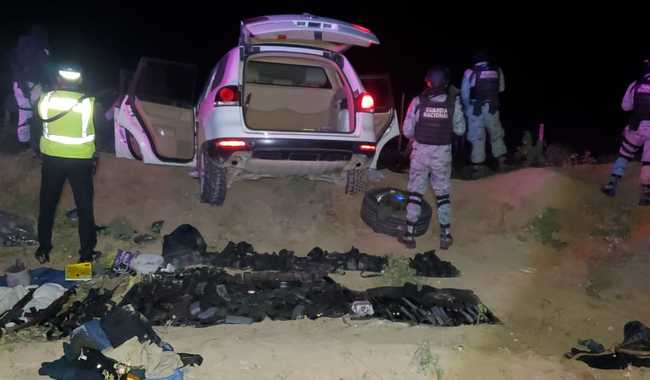 Los hechos se registraron durante patrullajes de seguridad y prevención del delito cuando los guardias nacionales observaron una camioneta afuera de la superficie de rodamiento, la cual se encontraba atascada en el terreno arenoso.