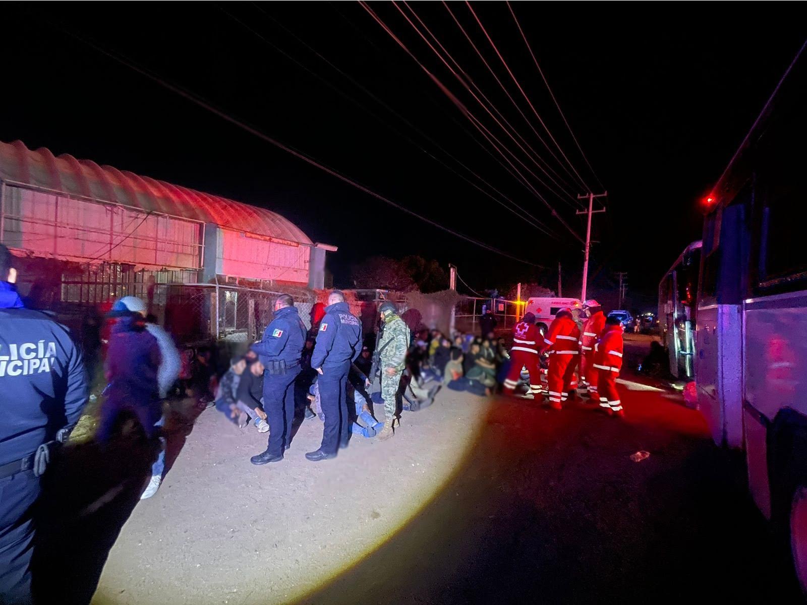 Elementos de la Secretaría de Seguridad Pública Municipal (SSPM) fueron los primeros en llegar al lugar, donde encontraron a los tres autobuses con más de 130 personas cada uno.