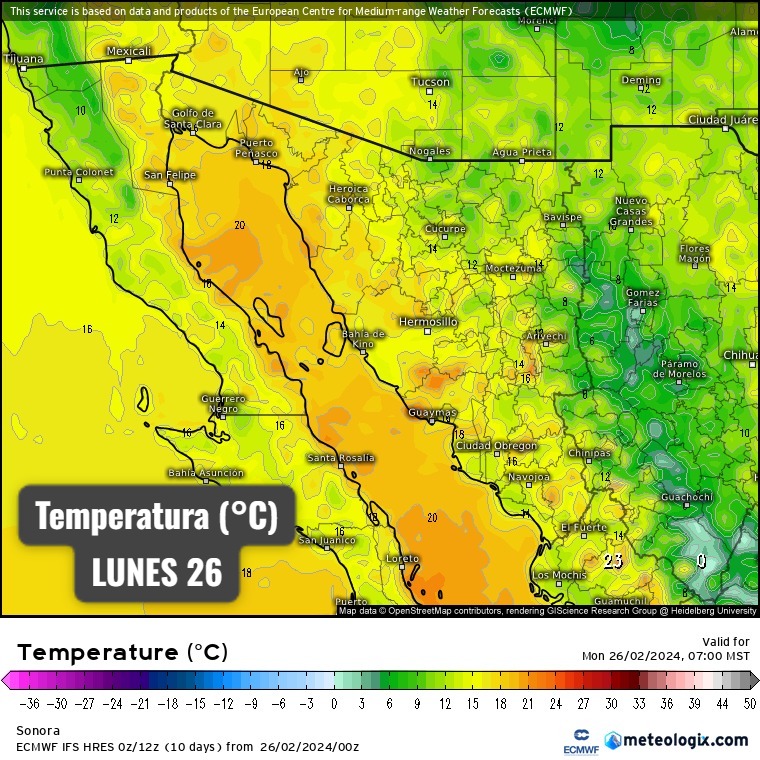 Para el caso de Hermosillo y Ciudad Obregón, se tendrán temperaturas con una máxima de