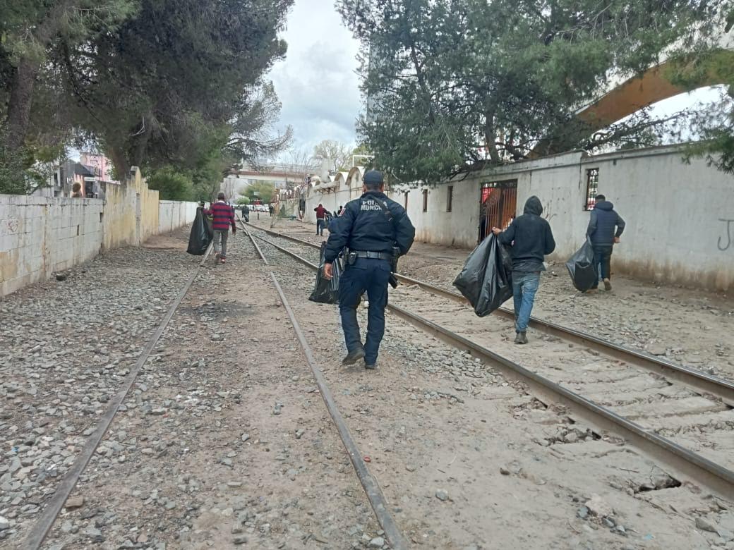 En una jornada poco usual, personal de la policía de Nogales, Sonora, junto con algunos ciudadanos que cumplían con servicio comunitario, se unieron para dejar relucientes las vías del tren en el sector centro.