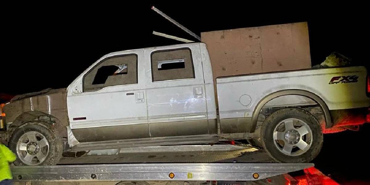 Tres de los vehículos asegurados cuentan con reporte de robo: un pick up Dodge RAM, un pick up Ford F-350, doble cabina, color blanco y un pick up GMC Sierra, doble cabina, color gris, excepto el camión AM General Corporation. En el lugar también se aseguraron 7 casquillos percutidos calibre 50 mm. y 24 vidrios balísticos (blindados).