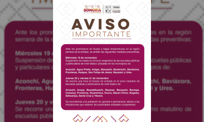Sonorahace 19 horasSuspenderán clases en 12 municipios de Sonora por bajas temperaturas
