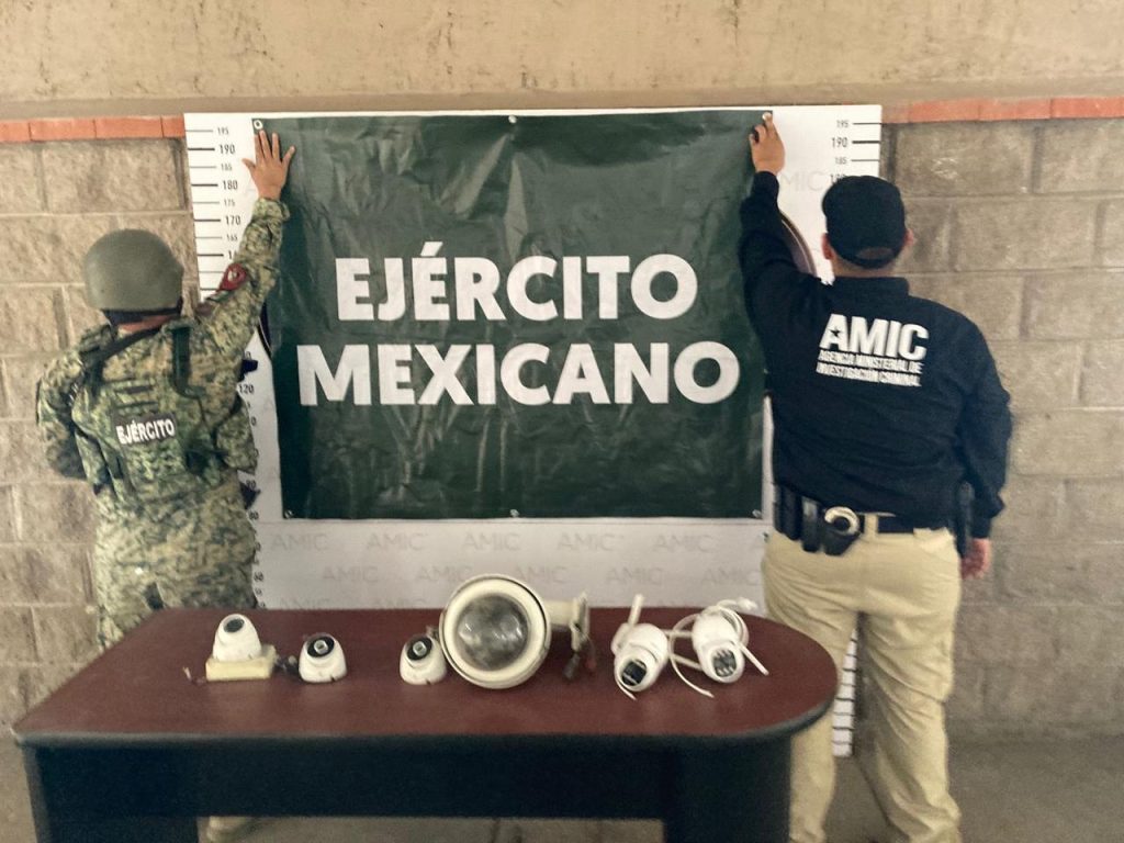 En un operativo conjunto llevado a cabo por la Secretaría de la Defensa Nacional (DEFENSA) y Agencia Ministerial de Investigación Criminal (AMIC), se logró la captura de Gustavo Adolfo “N” y el aseguramiento de seis dispositivos de videovigilancia clandestina, además de drogas y otros objetos relacionados con actividades delictivas en Hermosillo.