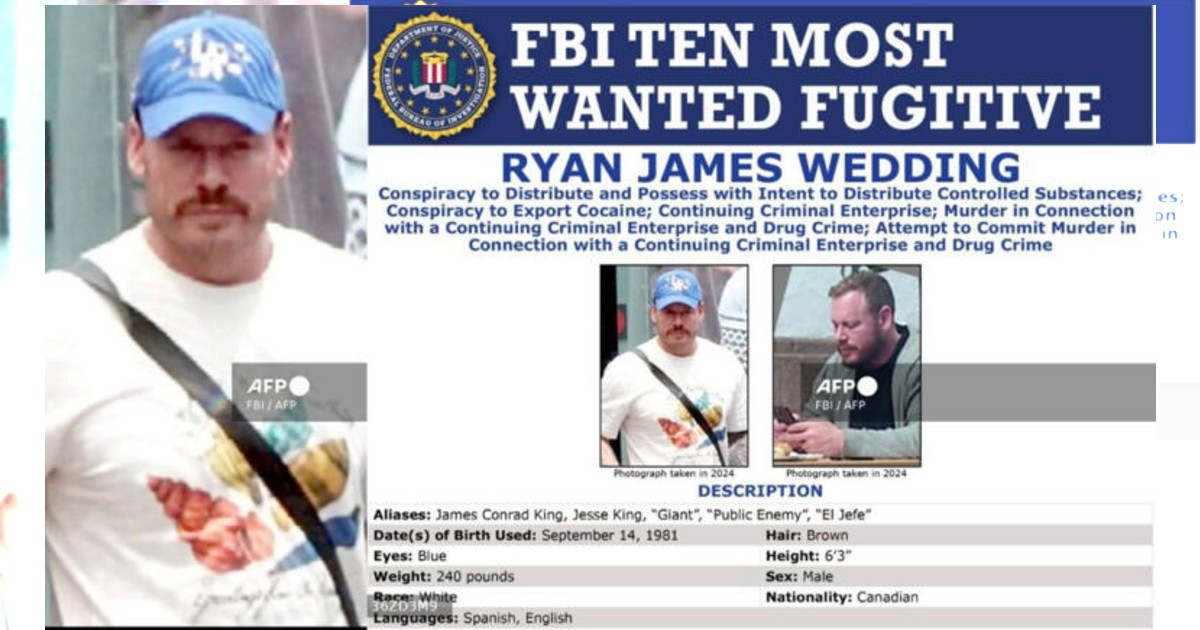 Estados Unidos a través del Buró Federal de Investigaciones (FBI), por sus siglas en inglés), ofrece hasta 10 millones de dólares quien aporte información sobre el paradero del narcotraficante canadiense ex deportista Ryan James Wedding, que se presume, podría estar prófugo de la justicia, en México.