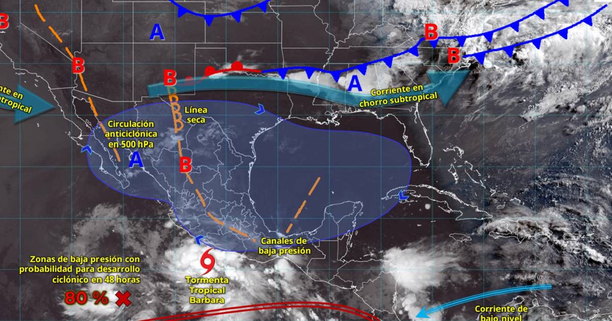 Tormenta Tropical Bárbara amenaza lluvias y oleaje elevado a estos estados