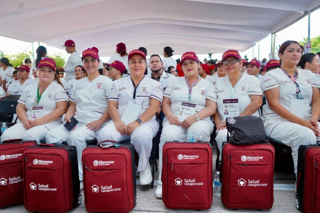 El pasado 6 de junio se entregaron equipos, materiales médicos y maletines con herramientas básicas a 310 facilitadores que estarán atendiendo en Sonora con el programa “Salud Casa por Casa”, además, previamente realizaron capacitaciones. El 9 de junio iniciaron las visitas a los domicilios por parte de las y los facilitadores de este servicio en el estado, en tanto que, en zonas como el Río Sonora y en la Sierra Alta las brigadas se llevan a cabo con unidades móviles en sinergia con IMSS-Bienestar.