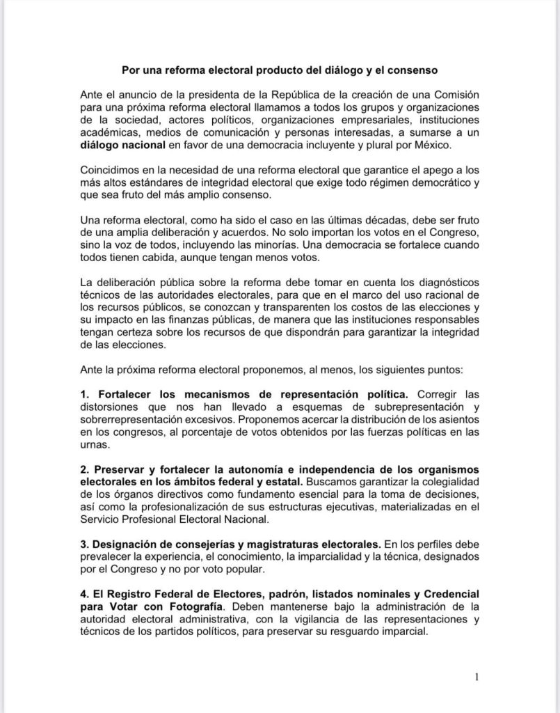 Tras el anuncio de una posible reforma electoral, antiguos consejeros del Instituto Nacional Electoral (INE) y exmagistrados del Tribunal Electoral lanzaron un llamado urgente al gobierno y al Congreso para abrir un diálogo nacional amplio, técnico e incluyente antes de modificar las reglas del sistema democrático mexicano.