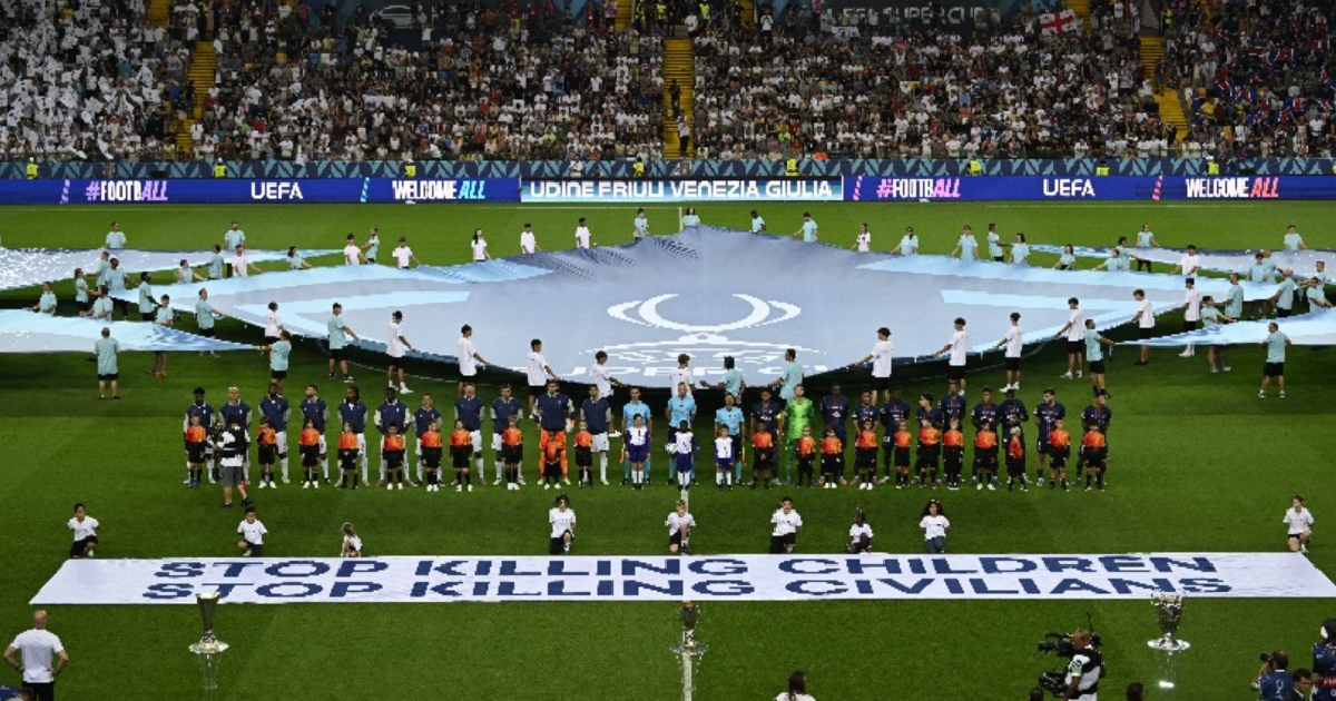 “Dejen de matar niños, dejen de matar civiles”; UEFA desplegó pancarta en final de la Supercopa con mensaje por atrocidades en Gaza