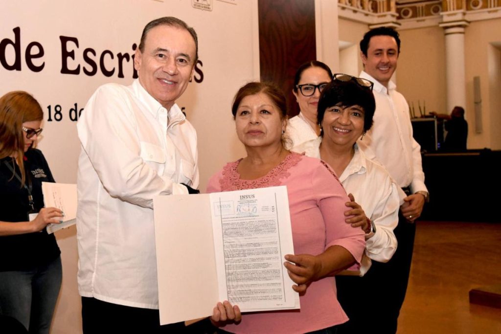“Ustedes saben lo que representa esta escritura, no solo tranquilidad, certeza jurídica, sino la posibilidad también de heredar en su tiempo a sus hijos un bien que tiene un gran valor”, indicó el gobernador Durazo.