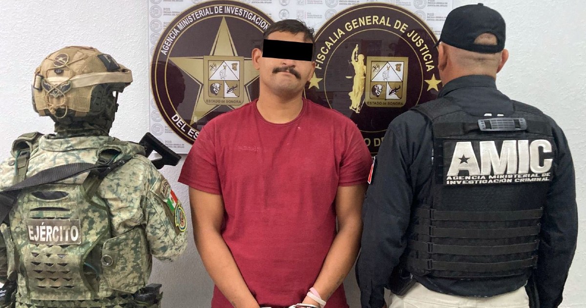 La Fiscalía General de Justicia del Estado de Sonora (FGJES), a través de la Agencia Ministerial de Investigación Criminal (AMIC), en coordinación con la Secretaría de la Defensa Nacional (DEFENSA) y en estrecha colaboración con el Servicio de Alguaciles de Estados Unidos (US Marshals), logró la localización y aseguramiento de Ramón Guillermo “N”, de 28 años, quien contaba con una orden de arresto vigente en ese País por el delito de tráfico de armas.
