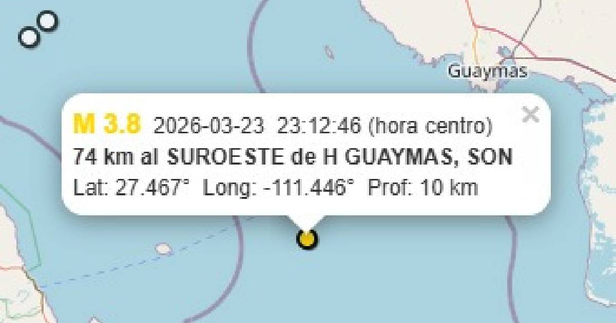 Luego de que el Servicio Sismológico Nacional reportó un sismo a 74 kilómetros al suroeste de Guaymas, de magnitud 3.8, se confirmó que no hubo daños ni reporte de que el movimiento haya sido percibido.