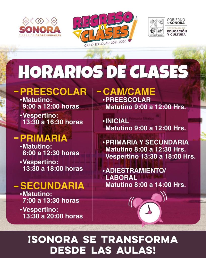 #RegresoaClases Estos son los horarios de clases de educación básica en Sonora
