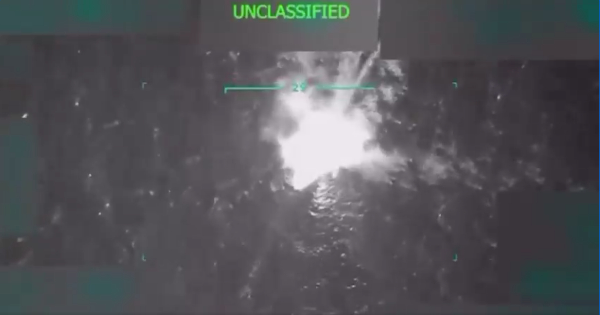 El mandatario compartió un video en el que se observa a una lancha rápida viajando en el mar, cuando de repente se ve un destello sobre la embarcación, que termina por incendiarse.