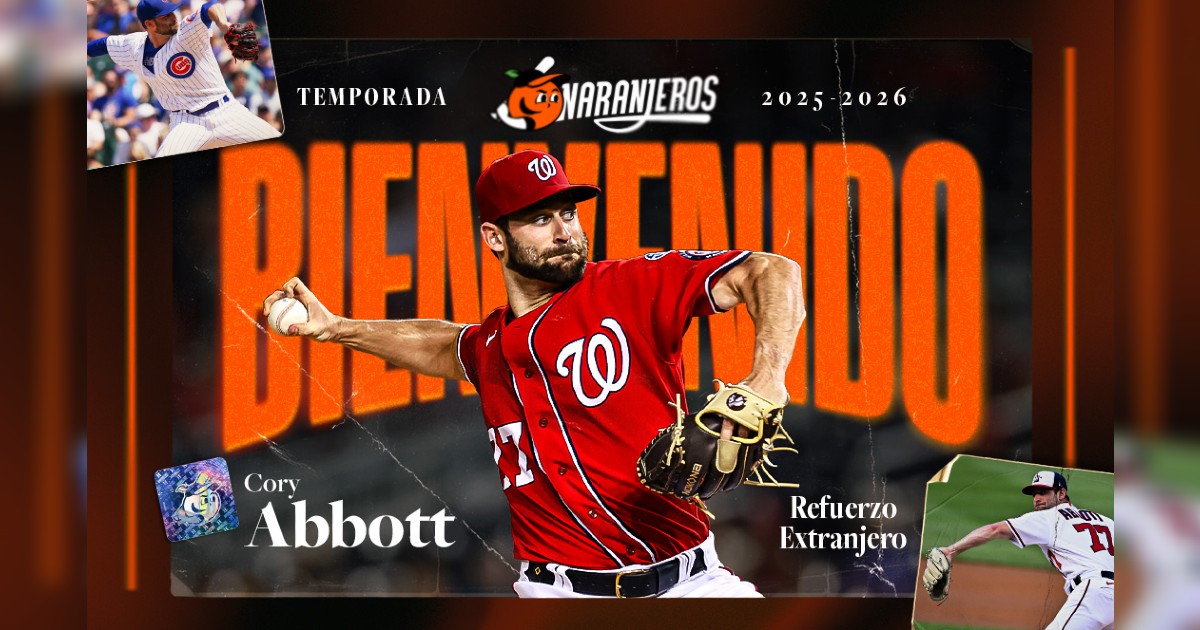 El Club Naranjeros de Hermosillo anuncia este día la contratación del lanzador Cory Abbott para fortalecer su cuerpo de pitcheo en la temporada 2025-2026 de la Liga ARCO Mexicana del Pacífico.