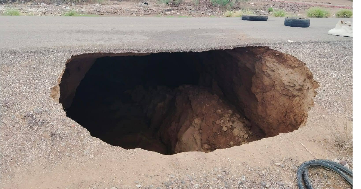 Esta mañana se registró un socavón en la calle 0 Sur, a pocos metros de la carretera 100 que conecta Hermosillo con Bahía de Kino.